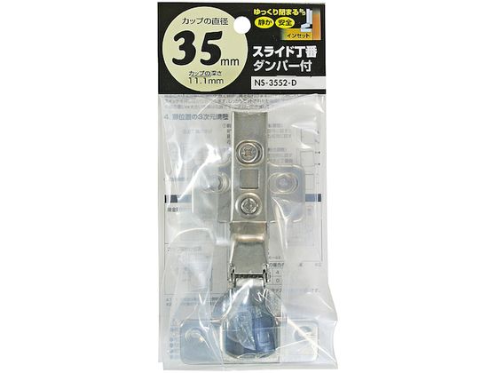 ●全長(mm):112●幅(mm):62●ねじ穴数:4●穴径(mm):35●開き角度(°):105°●キャッチ:あり●推奨扉厚(mm):15〜25●ダンパー付●取付方法:ビス(付属)●カップ径(mm):35●付属品ビス(4本)、スペーサー●仕上げ:ニッケルメッキ●本体:スチール