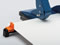 「楽あけガイド」をクルッと回転させて、用紙当てをスライドさせるだけで、紙を折らずに素早くセンター合わせができます。また、穴あけ位置をあわせた状態でたためるので、一度セットすれば毎回の位置調整が不要です。(※A4縦より本体側のサイズについてはたたむことができません。)用紙当てが大きく、ガイドと台座の高さが同じなので用紙1枚だけでもしっかりセンター合わせができます。 |