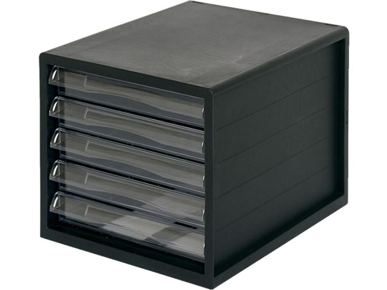 ●色:黒●本体寸法:幅282×奥行344×高さ260mm●引出し内寸法:浅型5段/幅243×奥行314×高さ36mm●材質:本体/PP、引出し/PS●付属品:タイトルシール●引出しストッパー付き(引出し取り外し可)