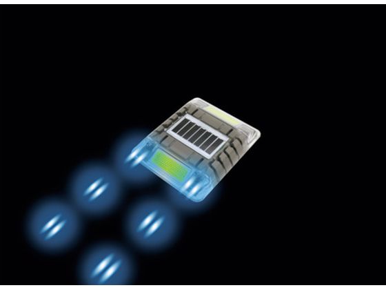 ●色:青●幅(mm):100●奥行(mm):120●高さ(mm):18●LED数(個):4●反射部カラー:ライムイエロー●タイプ:片面LED●電源:ソーラー式●電源(V):ソーラー式●電源:ソーラー式●蓄電池:キャパシタ(22F×2本)●点滅回数:120±30回/分●カバー:ポリカーボネート●本体:エポキシ樹脂●両面テープ:ブチルゴム系●両面テープ