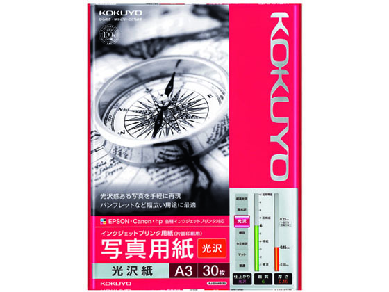 ●サイズ:A3(タテ420×ヨコ297mm)●片面印刷用紙●対応プリンタ:インクジェット(染料/顔料)●紙厚:123g/m2(0.15mm)●白色度95%程度(ISO)●注文単位(入数):1冊(30枚)