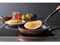 マークの模様が消えたら、予熱完了・適温の合図。 すばやく均一な熱伝導で、食材の旨味を封じ込めます。 使い始めのこびりつきにくさが続くので、お手入れ簡単。 |