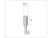 ●型番:24709 ●形状:円筒(ダブルカット)●軸径(mm):3●刃径(mm):6.3●全長(mm):50●刃長(mm):13●最高使用回転数(rpm):40000
