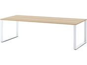 ●カラー/天板:トリニティオークライト、脚:ホワイト●サイズ:W2400×D1100×H720mm ●重量:53kg ●仕様 天板:メラミン化粧板、天板厚25mm、平エッジ仕様 脚:スチール塗装仕上 ●天板は木の質感を表現するために表面に凹凸があります。●グリーン購入法適合済