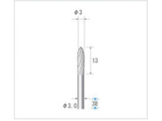 ●型番:24726 ●形状:砲弾(ダブルカット)●軸径(mm):3●刃径(mm):3●全長(mm):38●刃長(mm):12.7●最高使用回転数(rpm):50000