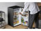 冷蔵室はガラス棚とクリアケースがついて使い勝手がよく、7段階の温度調節ができます。ドアポケットが3段ついており、各ポケットには500L缶・350L缶・2Lのペットボトルが入ります。庫内の棚は取り外し可能なので鍋など大きいものを保存したり、掃除も楽にできます。シンプルでコンパクトなデザインで置き場所に困りません。庫内に冷却器があるので、氷を作る事ができます。 |