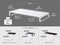 台の上にパソコンのモニター、台の下にはキーボードが収納でき、デスクの有効スペースが広がります。幅465mm以下のフルサイズキーボードが収納できる、大きすぎないちょうどいいサイズです。2台並べると約1mになるため、ノートPCとモニターを置いて接続すれば2画面操作が可能です。脚には滑り止めが付いています。天板はスチール製でマグネット製品を付けることができます。付属の六角レンチで簡単に組み立てられます。 |