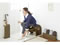 木目の美しい曲げ木と座り心地の良いファブリックの座面、便利な収納棚付きで玄関に一台あるととっても便利です。 |