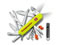 ●カラー:イエロー ●重量:約 24g ●原産国:スイス ●サイズ:約 91 x 26 x 25 mm ●材質 ブレード: ステンレススチール ハンドル: セリドール樹脂 ●機能:1.大刃 2.小刃 3.コルクせん抜き 4.カン切り 5.マイナスドライバー3mm 6.せん抜き 7.マイナスドライバー6mm 8.ワイヤーストリッパー 9.穴あけ/糸通し穴 10.キーリング 11.ピンセット 12.ツースピック 13.LEDライト 14.プラスドライバー(フィリップス型1/2) 15.マイナスドライバー 2.5mm 16.マルチフック 17.加圧ボールペン (青) 18.ピン 19.のこぎり 20.はさみ 21.ファイヤーアント 22.蓄光ハンドル 23.ホイッスル ●付属品:ホイッスル(中国製)