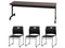 ●フォールディングテーブル1台+RAPスタッキングチェア3脚 セット ●外寸/テーブル:幅1800×奥行450×高さ700mm/チェア:約幅500×奥行565×高さ770(座面高430)mm(1脚あたり) ●カラー/テーブル:ブラックフレーム×ウォールナット天板/チェア:背ブラック×座面ブラック ●材質/テーブル:天板/メラミン樹脂化粧板、エッジ/PVC貼り、脚/スチール(粉体塗装)、キャスター/ナイロン/チェア:背座/ポリプロピレン、張地/PVCレザー(塩化ビニール)、ウレタンフォーム、フレーム/スチール(粉体塗装) ●機能/テーブル:中棚付き/チェア:スタッキング ●重量/テーブル:21.4kg/チェア:約5kg(1脚あたり) ●梱包重量/テーブル:23.6kg/チェア:約8kg(1脚あたり) ●セット内容/テーブル(GLF−1845−FW)×1台/チェア(Rap−SC−FW)×3脚 ●組立品 ●保証期間:1年