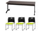 ●フォールディングテーブル1台+RAPスタッキングチェア3脚 セット ●外寸/テーブル:幅1800×奥行600×高さ700mm/チェア:約幅500×奥行565×高さ770(座面高430)mm(1脚あたり) ●カラー/テーブル:ブラックフレーム×ウォールナット天板/チェア:背ブラック×座面グリーン ●材質/テーブル:天板/メラミン樹脂化粧板、エッジ/PVC貼り、脚/スチール(粉体塗装)、キャスター/ナイロン/チェア:背座/ポリプロピレン、張地/PVCレザー(塩化ビニール)、ウレタンフォーム、フレーム/スチール(粉体塗装) ●機能/テーブル:中棚付き/チェア:スタッキング ●重量/テーブル:23.2kg/チェア:約5kg(1脚あたり) ●梱包重量/テーブル:26.4kg/チェア:約8kg(1脚あたり) ●セット内容/テーブル(GLF−1860−FW)×1台/チェア(Rap−SC−FW)×3脚 ●組立品 ●保証期間:1年