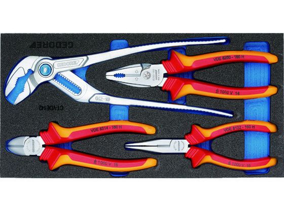 ●型番:2309033 ●入数:1S ●ケース寸法(mm)間口:157.5●ケース寸法(mm)奥行:310●ケース寸法(mm)高さ:35●セット内容(点):4●セット内容:ウォーターポンププライヤ250mm(14210C)、絶縁ペンチ180mm(VDE8250−180H)、絶縁ノーズプライヤ160mm(VDE8132−160H)、絶縁ニッパ160mm(VDE8314−160H) ●モデル:1500CT1−VDE142●1000V絶縁タイプ
