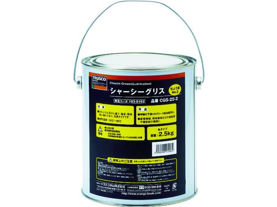 ●型番:CGS-25-2 ●ちょう度:No.2 ●色:黄褐色 ●容量(kg):2.5 ●容量(L):2.87 ●使用温度範囲:−10〜80℃ ●容器:缶 ●主成分:鉱物油