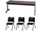 ●フォールディングテーブル1台+RAPネスティングチェア3脚 セット ●外寸/テーブル:幅1800×奥行600×高さ700mm/チェア:約幅540×奥行600×高さ770(座面高430)mm(1脚あたり) ●カラー/テーブル:ブラックフレーム×ウォールナット天板/チェア:背ブラック×座面ブラック ●材質/テーブル:天板/メラミン樹脂化粧板、エッジ/PVC貼り、脚/スチール(粉体塗装)、キャスター/ナイロン/チェア:背座/ポリプロピレン、張地/PVCレザー(塩化ビニール)、ウレタンフォーム、フレーム/スチール(粉体塗装)、キャスター/ナイロン ●機能/テーブル:中棚付き/チェア:キャスター付き ●重量/テーブル:23.2kg/チェア:約5kg(1脚あたり) ●梱包重量/テーブル:26.4kg/チェア:約8kg(1脚あたり) ●セット内容/テーブル(GLF−1860−FW)×1台/チェア(Rap−NC−FW)×3脚 ●組立品 ●保証期間:1年