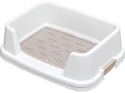 スノコを取り付けて使用することで、シーツをひっかいて破いたり、食べたりすることを防止します。トイレのフチが高いので、愛犬がトイレを覚えやすく、おしっこの飛び散り防止にも効果的です。トレーニングが終わればスノコを取り外し通常のトイレとして使用できます。銀イオンで臭いの元となる菌の発生を抑制します。シーツのヨレやシワを抑えるバックル付きです。 |