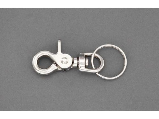 ●材質:スチール(ニッケルメッキ)●全長:90mm●ベルトループサイズ:28×12×63(H)mm●ベルトループ内径:11mm●最大開口:14mm●リング内径:28mm●リング線径:2mm●重量:38g●ベルトループとキーリングのセットです。●太いストラップやベルト通しに取付けやすいよう、ベルトループの口は広く開きます。●ループの下部分は、360°回転します。
