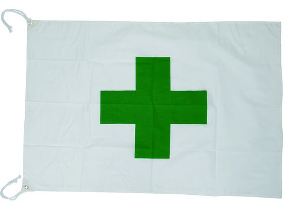 ●ハトメ2か所、紐2本付なので掲示が楽に行えます。 ●布製なので汚れても洗濯が可能です。 ●白地に緑十字の安全旗です。 |