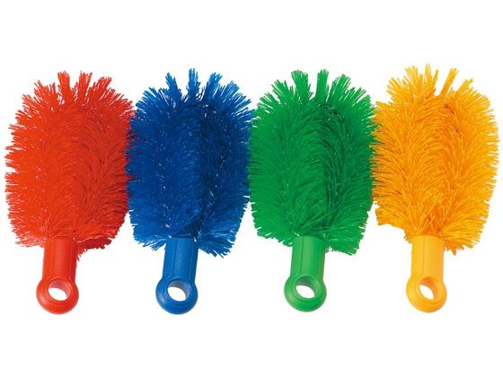 ●フック付きタワシ ●色:黄 ●サイズ:190×100×55mm ●材質:ポリプロピレン、亜鉛メッキ鉄線 ●注文単位:1個