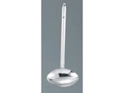 皿部外周面に添わせた把手先部と皿部とを、スポット溶接で連結すると共に蝋付けによって両者の隙間を密封したレードルです。充分な強度を備えると共に、食品かすが残らず雑菌類の付着を防ぎ、しかも洗いやすく衛生的なレードルです。 レードルの容量表示はおおよその目安としてください。 |