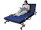 ●色:ネイビー ●サイズ:使用時:(約)幅81.5×長さ199×高さ42(マット厚さ約8)cm、収納時:(約)幅81.5×奥行42×高さ103cm ●重さ:(約)19kg ●耐荷重量:(約)90kg ●素材/フレーム:スチール(粉体塗装)、マット張り地:ポリエステル、マット中材:ウレタンチップ・高反発ウレタン ●マットサイズ:約幅86×長さ190cm ●キャスター付き ●14段階リクライニング ●お客様組立式