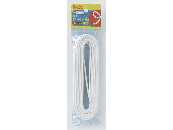 ●平型ビニールコード●定格:300V 12A●全長:4m●導体:1.25mm2(0.18mm×50本)●カラー:ホワイト