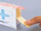 貼りやすい工夫:シール中央部分にスジ押しを入れました。ラベルが取り出しやすいパッケージ。下の紙を引っ張ると、ラベルが自然に台紙からはがれて出てきます。 |