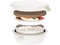 ●カラー:アイボリー ●サイズ:(約)幅13.8×奥行12.0×高さ12.2cm ●重量:420g ●材質:保温ケース/ステンレス鋼(アクリル樹脂塗装)、保温ケースフタ/PP(中材:発泡PP断熱材)、止め具・リング・おかず容器本体・ご飯容器本体・中フタ・弁本体/PP、パッキン・エア弁/シリコーンゴム ●原産国:中国 ●容量:ご飯容器/約250ml(お茶碗約1.2杯分)、おかず容器/約250ml ●電子レンジ可否:可(保温ケース・各フタは除く) ●食洗機可否:可(保温ケース以外)