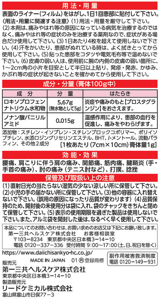 ●すぐれた鎮痛消炎効果をもつ「ロキソプロフェンナトリウム水和物」を配合。