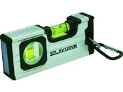 ●パイプの上にも設置が容易なV字測定面でマグネット付です。 ●両端に衝撃性に優れたプロテクトラバー付です。 ●腰袋などへの着脱にも便利なカラビナ付です。 ●変形しづらいI(アイ)型モノコックフレームです。 ●気泡管は高精度±1.00mm/mを採用してます。 |