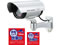 赤色LEDが約1秒間隔で点滅し、防犯意識を高めるダミーカメラです。防水IP44に対応しているので、屋外にも設置ができます。配線工事不要の電池式で手軽に設置でき、取付角度も調整可能です。また、「防犯カメラ作動中」の警告ステッカー2枚付きで侵入抑止効果をさらに高めます。 |