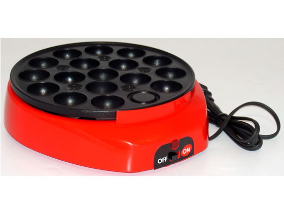 5種類の「表情焼き」と「はちまき」でゲームもできます! 熱源が電気なので、火を使わずに卓上で作れます。 直径3.5cmのたこ焼きが一度に17個作れます。 プレート表面がふっ素樹脂加工なのでひっくり返しとお手入れが簡単です。 |