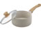 ふっ素樹脂コーティングを施し、汚れがこびりつきにくくなっています。注ぎ口が2か所付いているため、液体などを注ぎやすい形状となっています。ナチュラルカラーと木目調のハンドル・ガラスふたのつまみは、キッチンに馴染みやすく可愛らしいデザインです。内側はマーブル模様です。有害物質(PFOA/PFOS)不使用の塗料を使用しているため、安心してお使いいただけます。 |