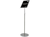 ●外寸1:スタンド直径270×H750〜1350mm●外寸2:フレーム230×18×H318mm●材質1:スタンド/スチールクロームメッキ●材質2:フレーム/PS樹脂製●付属品:A4フレーム