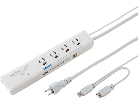 ●定格容量:15A・125V(合計1500Wまで) ●プラグ:3P(絶縁キャップ付き) ●差込口:3P・4個口(パソコン本体用×1、連動口×3)(抜け止めタイプ) ●コード:VCTF 2.0平方ミリメートル×2芯、0.75平方ミリメートル×1芯(アース)、仕上がり外形寸法 直径約8.5mm ●コード長:2m ●USBコード長:1.5m ●本体サイズ:W260×D50×H34mm ●付属品:モジュラーケーブル(1.5m) ●使用地域:日本国内のみ。日本以外ではご使用いただけません。 ●認証:電気用品安全法(PSE)技術基準適合品