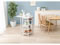 食事時に料理を置いたりパソコンの作業も。天板をひろげて裏のくぼみに脚をはめるだけ。 高さ調整できる可動棚。2Lのペットボトルもすっぽりと入ります。 天板を使わない時はたたんでコンパクトにしっかり固定するストッパー付き。 |