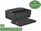 ●外寸:650×440×340H(mm)●折りたたみ時高さ:H90mm●内寸:600×405×H313(mm)●有効内寸:600×405×H307(mm)●製品色:ブラック●材質:PP+リサイクルPP50%●容量:75L●単品重量:3840g●入数:5個