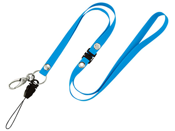 ●強く引っ張るとひもが外れる安全装置付きです。●名札用ケースや携帯電話などが取付けられます。 |