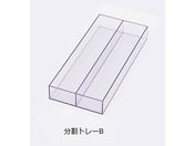 ●型番:分割トレーB●幅×奥行×高さ(mm):165×376×50●有効内寸法(mm):72×370×47●材質:透明PVC(塩化ビニル樹脂)●生産国:日本