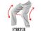 タテ糸に濃淡2種類の染め糸でスラブ糸をミックスして織っている為、独特のタテスジ感を創り、ハードな印象を与える。3シーズン対応可能な絶妙な生地厚にしている。 |