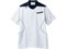 ●素材:ソフトラチネ 混率:ポリエステル100%●スタンドカラー●サイドパイピング●内ポケット●シャープなカッティングデザイン●SEK制菌加工●透け防止●吸汗●制電●防汚●色:白×ネイビー●サイズ:3L