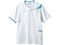 ●素材:ソフトラチネ 混率:ポリエステル100%●肩口スナップテープ仕様●アシンメトリーなデザイン●脇下ベンチレーション仕様●内ポケット付き●ストラップホールド●SEK制菌加工●吸汗●制電●防汚●透け防止●色:白×ウォームブルー●サイズ:L