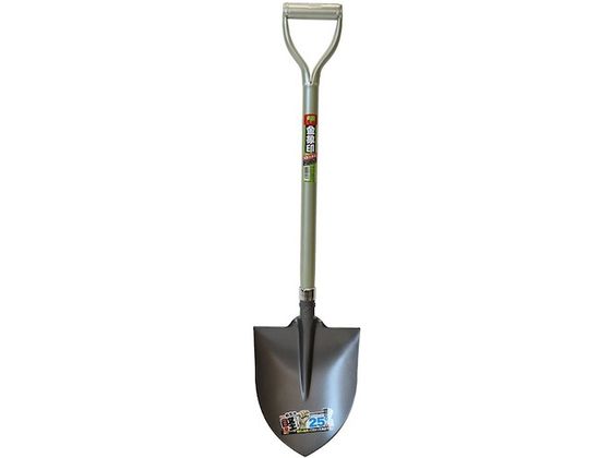頭部は焼き入れ・焼き戻しの熱処理をしています。サビに強くて軽いアルミパイプ柄です。パワーリングで強度アップです。金象パイプショベル丸(品番000796)から25%軽量化です。 |