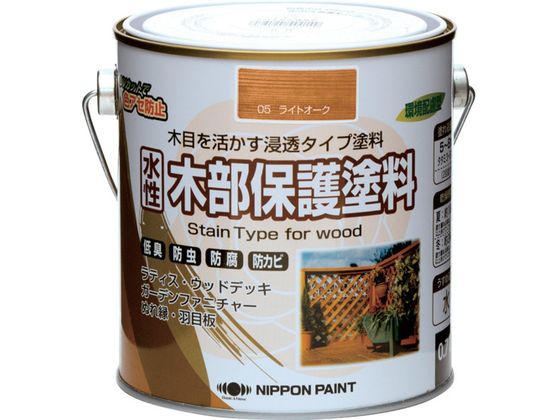 水性タイプなので、初めての方にも手軽に塗装できる木部保護塗料です。木材の防虫・防腐・防かび効果に優れ、木材に浸透して木の腐蝕を防ぎます。木目を生かした半透明仕上げができ、紫外線吸収剤(UVカット)により、色アセ・劣化を防止します。 |