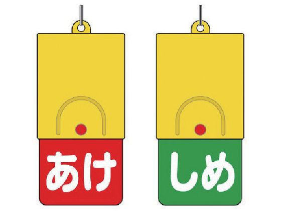 ●表示内容:あけ/しめ 赤地白文字/緑地白文字●縦(mm):101●横(mm):48●厚さ(mm):6.5●摘要:ステンレス二重カン付●ロックボタン切替式●両面表示●本体・表示プレート ABS樹脂●ポールチェーンは別売です。