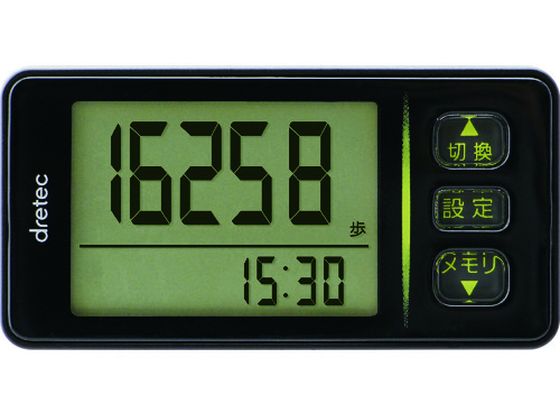 バッグやポケットなど場所を選ばすカウント可能です。30日分のデータを記憶し、履歴を表示します。便利なクリップストラップ付きです。便利な時計付きです。大きく見やすい大画面表示です。 |