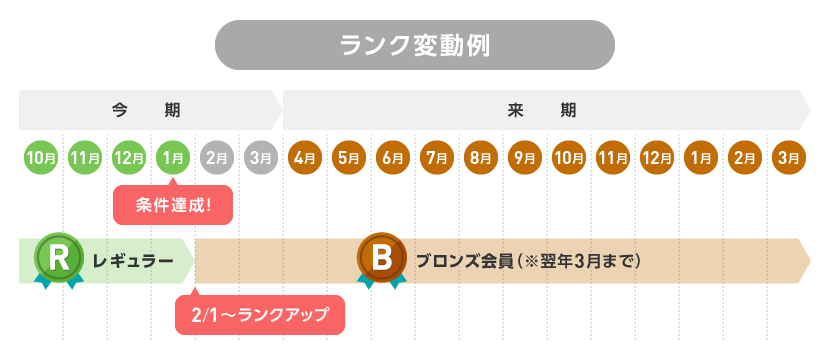 4月1日以降の累計購入金額(税抜)により、毎年3月31日に判定します。