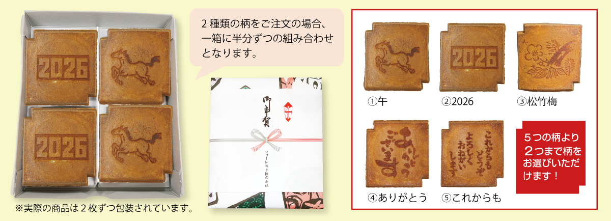 お好みの柄を2つ選んで、貴社らしいお年賀に!