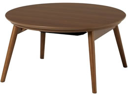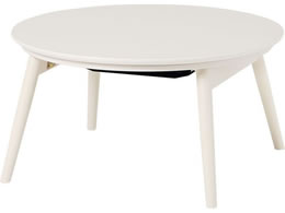 かわいいフォルムが特徴の丸型こたつ。脚を折りたたむとコンパクトに収納可能。