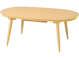 あたたかみのある木目調のナチュラルデザイン。丸みが美しいオーバル型の天板です。