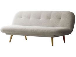 ブークレの張地とフリルのようなヘムデザインが特徴の三人掛けソファベッド